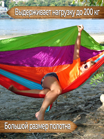 Купите этот разноцветный оригинальный гамак из парашютного шёлка и он будет радовать вас не один сезон, а мы оперативно доставим его до вашего населённого пункта.