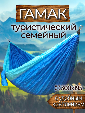 Данный гамак выполнен из парашютного шёлка – лёгкого и прочного материала. Он хорошо выдерживает высокие нагрузки и не теряет своей прочности под активным воздействием атмосферных явлений. Семейным гамак называется по причине того, что он имеет просторные габариты 195 на 300 см., и выдерживает нагрузку до 220 кг., а значит в нём легко можно расположиться двум взрослым с ребенком. А если у вас несколько детей или к вам часто приходят гости с детьми, то гамак сможет стать их излюбленным местом для совместных игр. Также данная модель будет актуальна для людей крупного телосложения, к тому же ширина гамака позволяет расположиться в нём в том числе поперёк. Гамак упаковывается в чехол-карман и в сложенном виде занимает минимум места, таким образом его легко взять с собой даже в пешую прогулку. По бокам гамака расположены карабины, а в комплект входят 2 верёвки для подвешивания.