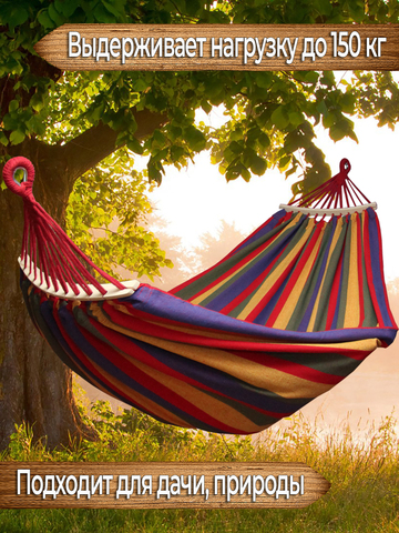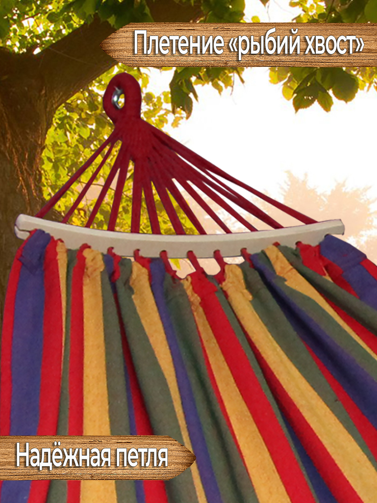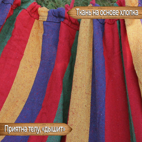 Предлагаем вашему вниманию гамак с компактными съёмными планками. Размер планок составляет 50 см, благодаря чему данный гамак нечто среднее между конструкциями с планками и без них. С точки зрения устойчивости к переворачиванию гамак ближе к без планочной конструкции. Следовательно в нём можно легко вздремнуть, не опасаясь нечаянно оказаться на земле. При этом планки придают гамаку более презентабельный вид в момент пока гамак пустует, не давая собраться в одну линию. Но их длины не хватает, чтоб растянутое полотно не мешало обзору и не принимало форму кокона. Как было написано выше, данные планки можно легко снять если вы захотите постирать ваш гамак или просто решите их временно не использовать.