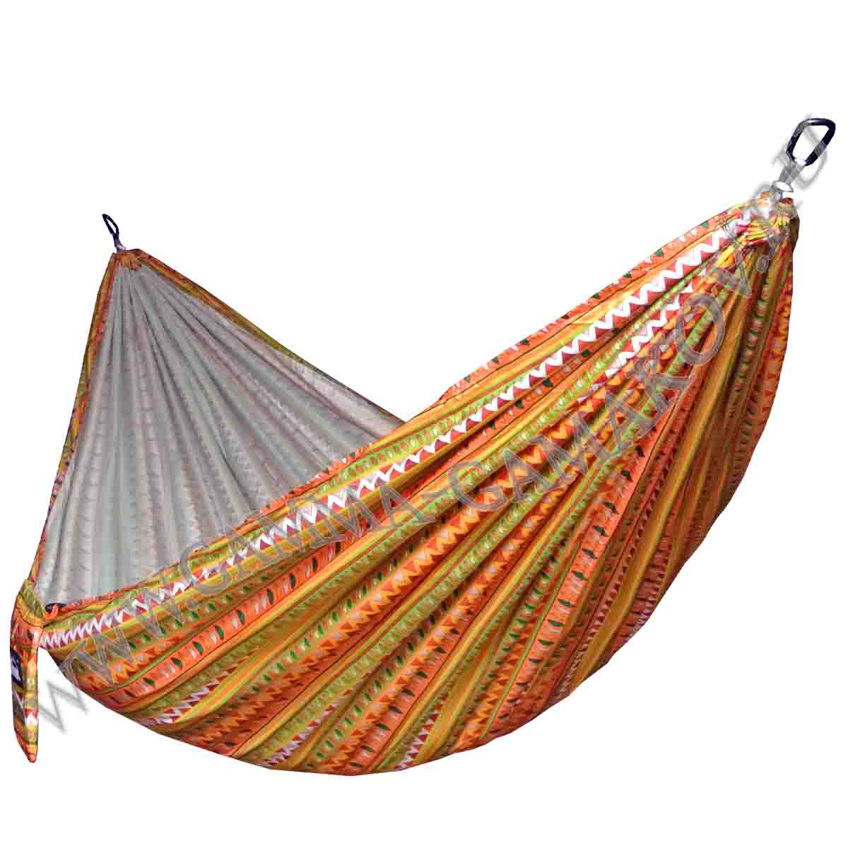 Представляем вашему вниманию оригинальный туристический гамак в ярких тонах с изображением этнического орнамента. Рисунок нанесён с одной стороны ткани, с другой - ткань имеет однотонный светлый фон. Наличие рисунка у туристических гамаков является редкостью, что делает данный гамак особенно привлекательным, он способен создать особую атмосферу в духе индейцев, живущих на природе. Если вы любите отдыхать на природе и часто выезжаете за город на пикник, данный туристический гамак сможет стать отличным дополнением для вашего отдыха. Гамак не занимает много места в сложенном виде, быстро развешивается между двумя деревьями. Данная модель двухместная и выдерживает двух взрослых людей или несколько детей, которые могут кататься на нём, как на качелях.