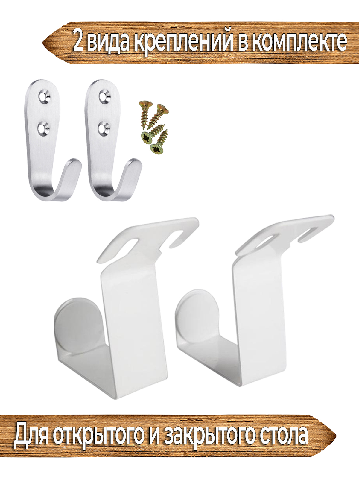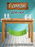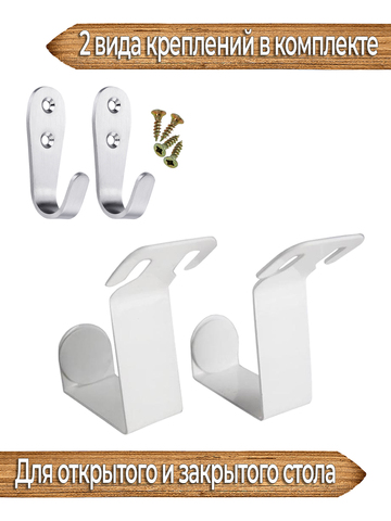 В комплекте к гамаку для ног идёт 2 вида креплений: съёмное крепление для открытого стола, и крепление-крючки для стола с боковыми стенками.