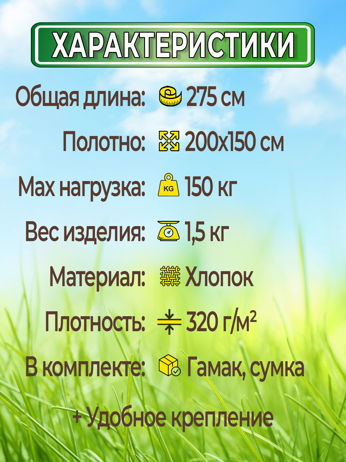 👍Гамак, сумка-чехол + удобное крепление |