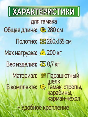 👍Гамак, карман-чехол, внутренний карман. 2 стропы по 2м. 2 верёвки для сетки + удобное крепление |
