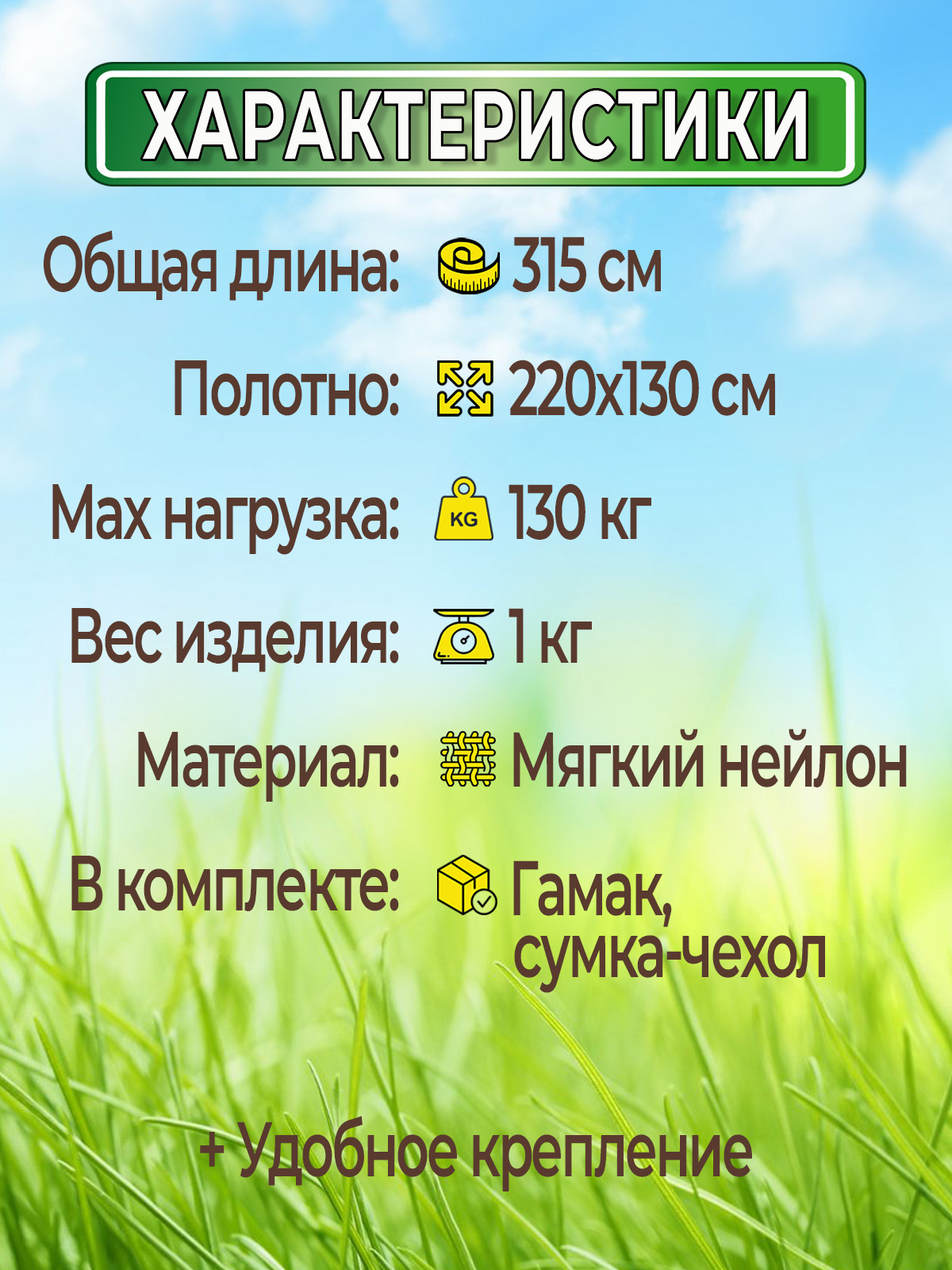 Если вы хотите купить оригинальный гамак который хорошо переносит влагу, то предлагаем вам обратить внимание на данную модель позитивной расцветки. Гамак комфортный и устойчив к переворачиванию. Полотно представляет собой мелкое плетение из прочной, но мягкой нейлоновой нити, благодаря чему он способен частично растягиваться в ширину. Данный материал так же хорошо переносит влагу, его можно оставлять в подвешенном состоянии не один день, не переживая что под воздействием осадков прочность гамака снизится. А ещё конструкция гамака в виде кокона прекрасно подходит для детей, которые с большим удовольствием будут играть в нём. В сложенном же виде гамак довольно компактный и лёгкий. Весёлая расцветка гамака создаёт настроение летнего отдыха и тепла даже если вы развесите гамак дома в холодное время года.