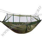Если отдых на природе вам портят надоедливые насекомые, то данная модель гамака с москитной сеткой станет отличным вариантом для вас. Купите этот гамак практичной зелёной расцветки и ничто больше не помешает вашему отдыху. А в отсутствие насекомых сетку можно откинуть набок, удобно расстегнув двумя бегунками. Ткань полотна – парашютный шёлк, максимально прочная, лёгкая и практичная. Гамак вместе с сеткой легко, подвесить используя стропы и дополнительные верёвки, которые уже входят в комплект. При необходимости он легко складывается в пришитый карман-чехол. Гамак свободно выдерживает вес двоих взрослых человек либо нескольких детей.