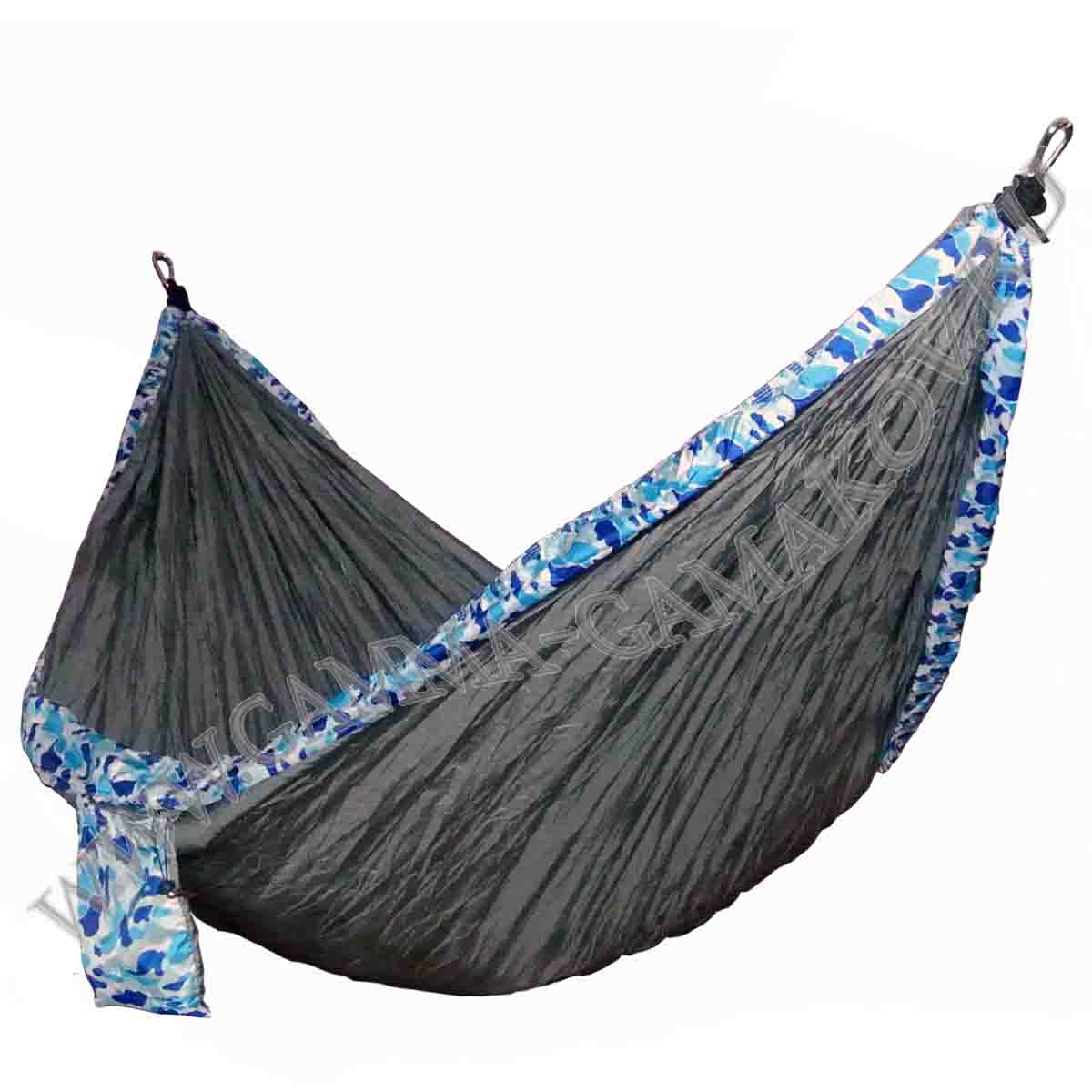 Купите этот двухместный гамак для туризма, отдыха в саду или даже в квартире и он станет для вас незаменимой вещью. Гамак всегда сможет обеспечить вам комфортное и надёжное место чтобы удобно прилечь и хорошенько расслабиться. Он легко развешивается между двумя опорами при помощи входящих в комплект верёвок и при необходимости быстро складывается в небольшой карман-чехол, пришитый сбоку, который можно использовать для хранения различных вещей, пока вы находитесь в гамаке. Ткань гамака - парашютный шёлк, очень лёгкая, приятная телу, но при этом прочная и износоустойчивая, абсолютно не боится влаги, быстро сохнет при намокании. Так же по периметру данная модель обшита дополнительной тканью с рисунком для придания оригинального дизайна и увеличения ширины гамака до 160 см. Таким образом ширина позволяет лежать не только вдоль, но и поперёк немного свесив ноги.