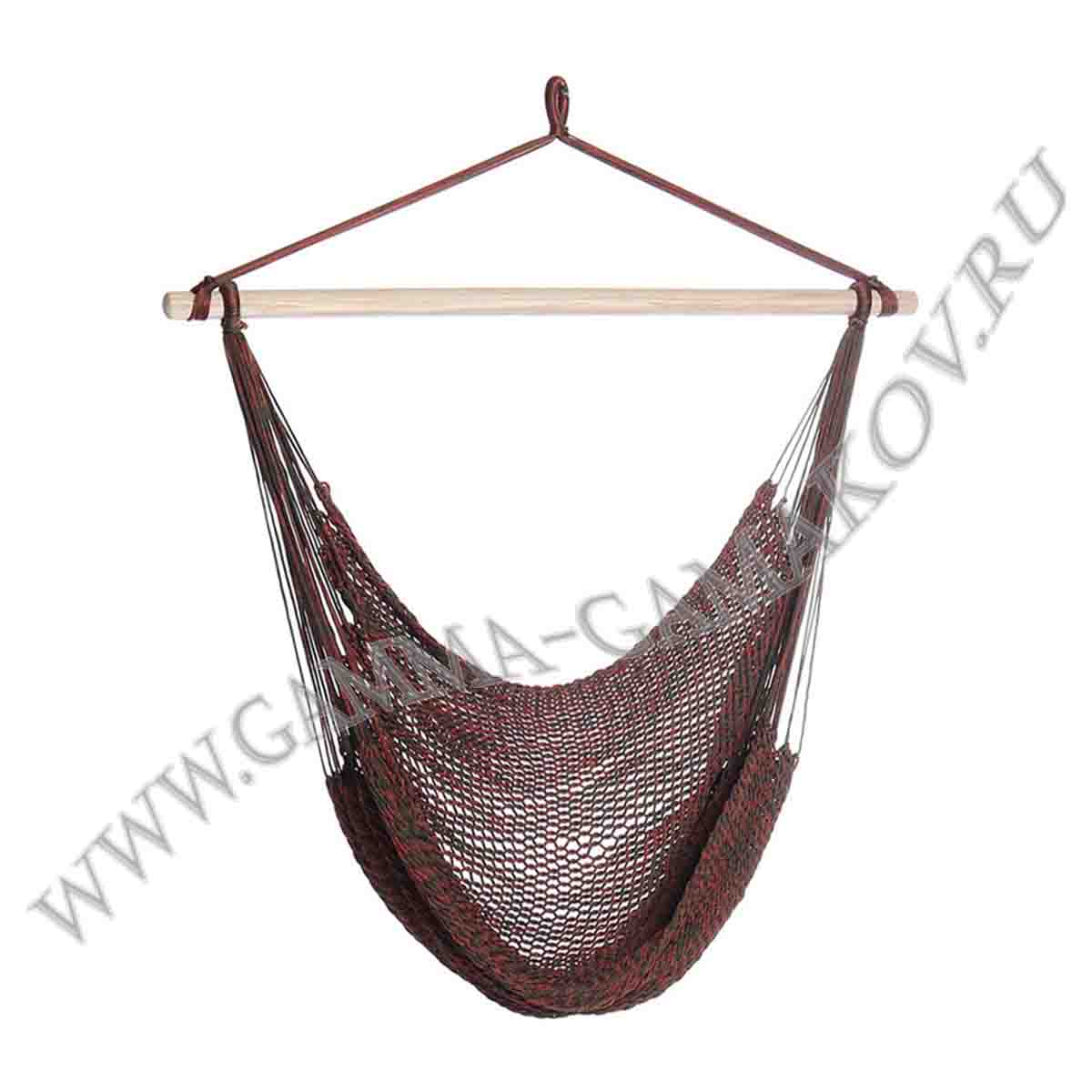 Это замечательное кресло-гамак станет отличным атрибутом отдыха и дополнением к вашей стоянке на природе, а также хорошо подойдёт и для дома. Данная модель имеет красивую темно-бордовую расцветку с небольшим зелёным отливом. Такое кресло будет интересно смотреться в природных условиях или же придаст вашему домашнему интерьеру особую изюминку.