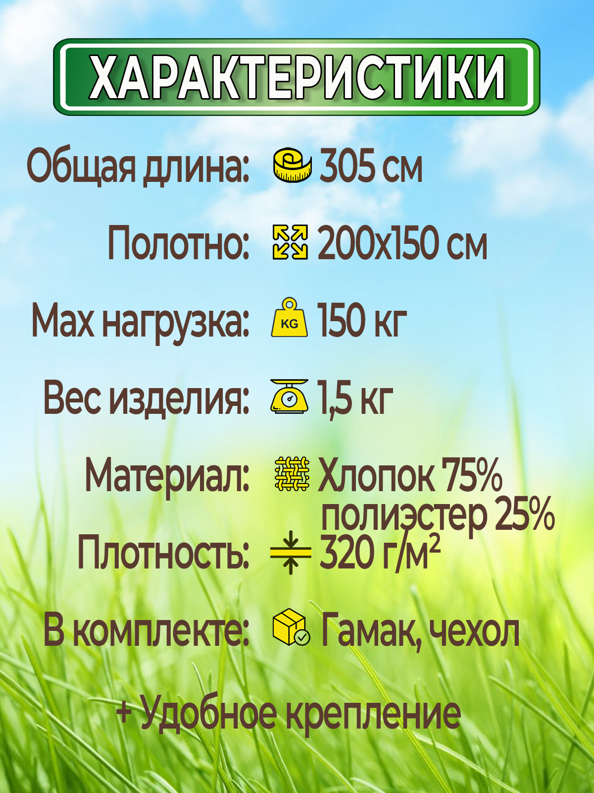 👍Гамак, чехол + удобное крепление |
