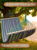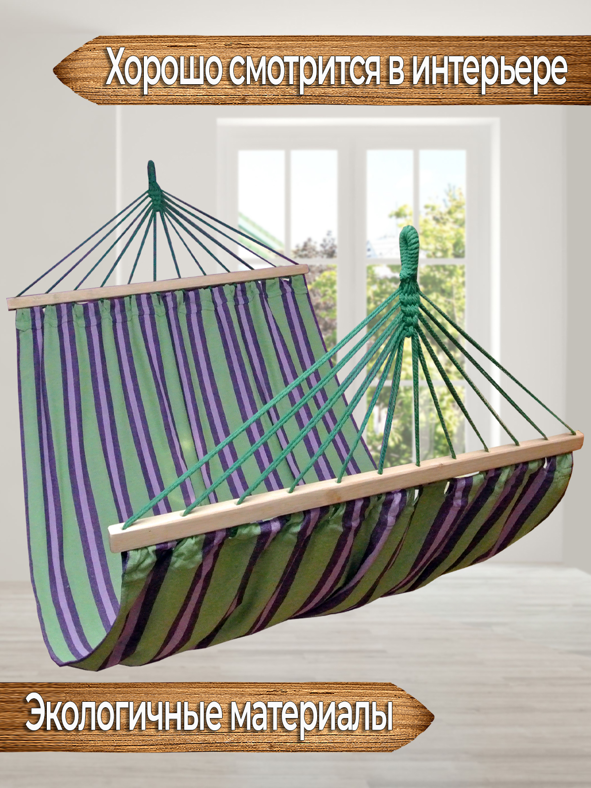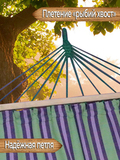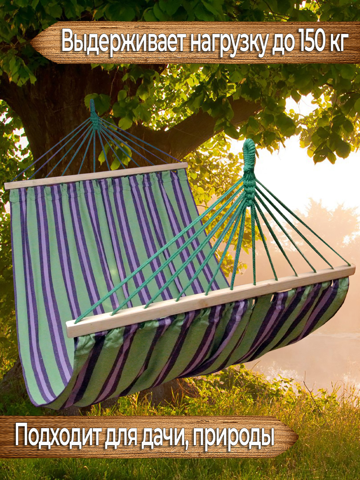 Этот красивый, комфортный и надёжный двухместный планочный гамак позволит вам наслаждаться приятным и расслабляющим отдыхом, лёжа в нём. Купите данный широкий гамак для природы, дачи или частного дома и огромное вместительное ложе, парящее в воздухе всегда будет к вашим услугам. Ткань полотна на основе хлопка приятна коже и хорошо пропускает воздух, а планочная конструкция гамака равномерно натягивает ткань и не даёт вам полностью «утонуть» в нём. Благодаря чему вы свободно можете видеть всё, что вас окружает, лёжа в гамаке. А ещё в нём удобно читать, смотреть фильмы или слушать музыку.