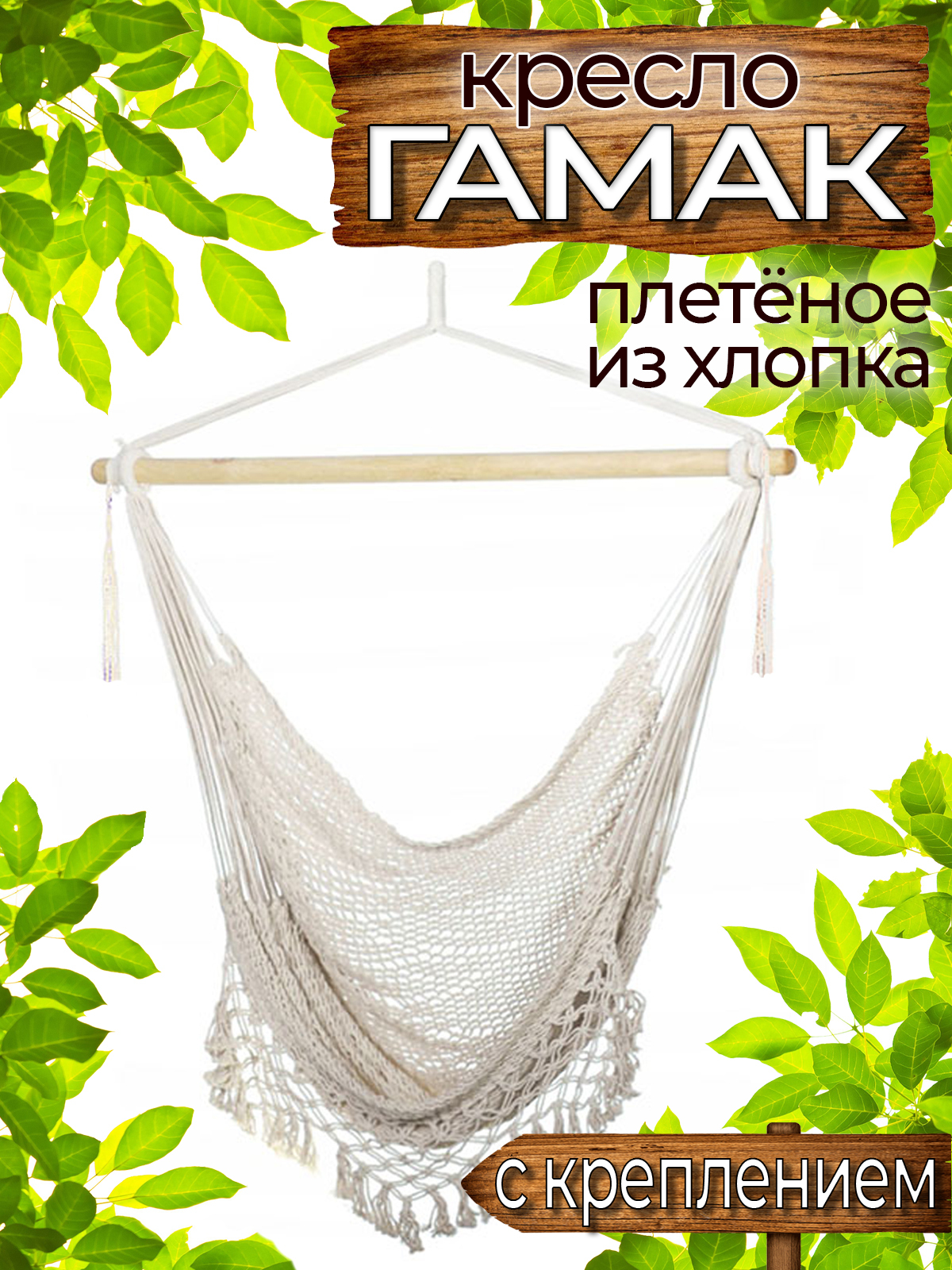 Это плетёное кресло-гамак станет отличным дополнительным сидячим местом на природе, даче и, конечно, дома. Прочная хлопковая нить, из которой сплетено кресло, обеспечивает надёжность и комфорт от пребывания в нём, позволяя заниматься делами или отдыхать. При этом нить имеет очень мелкое плетение, таким образом обеспечивая наибольшее облегание и удобство. При этом тело человека, расположенного в нём, способно дышать и улавливать ветерок, что особенно приятно в жаркий летний день. Купив кресло-гамак и подвесив его в помещении или на природе, вы по достоинству оцените его комфорт, а дети придут от него в восторг, ведь его можно использовать ещё и как качели! Оно надолго станет предметом для самых весёлых игр! Это подвесное кресло будет отлично смотреться на лоджии или дополнит интерьер вашей комнаты и будет радовать вас в любое время года, особенно детей, которые будут использовать кресло как качели.